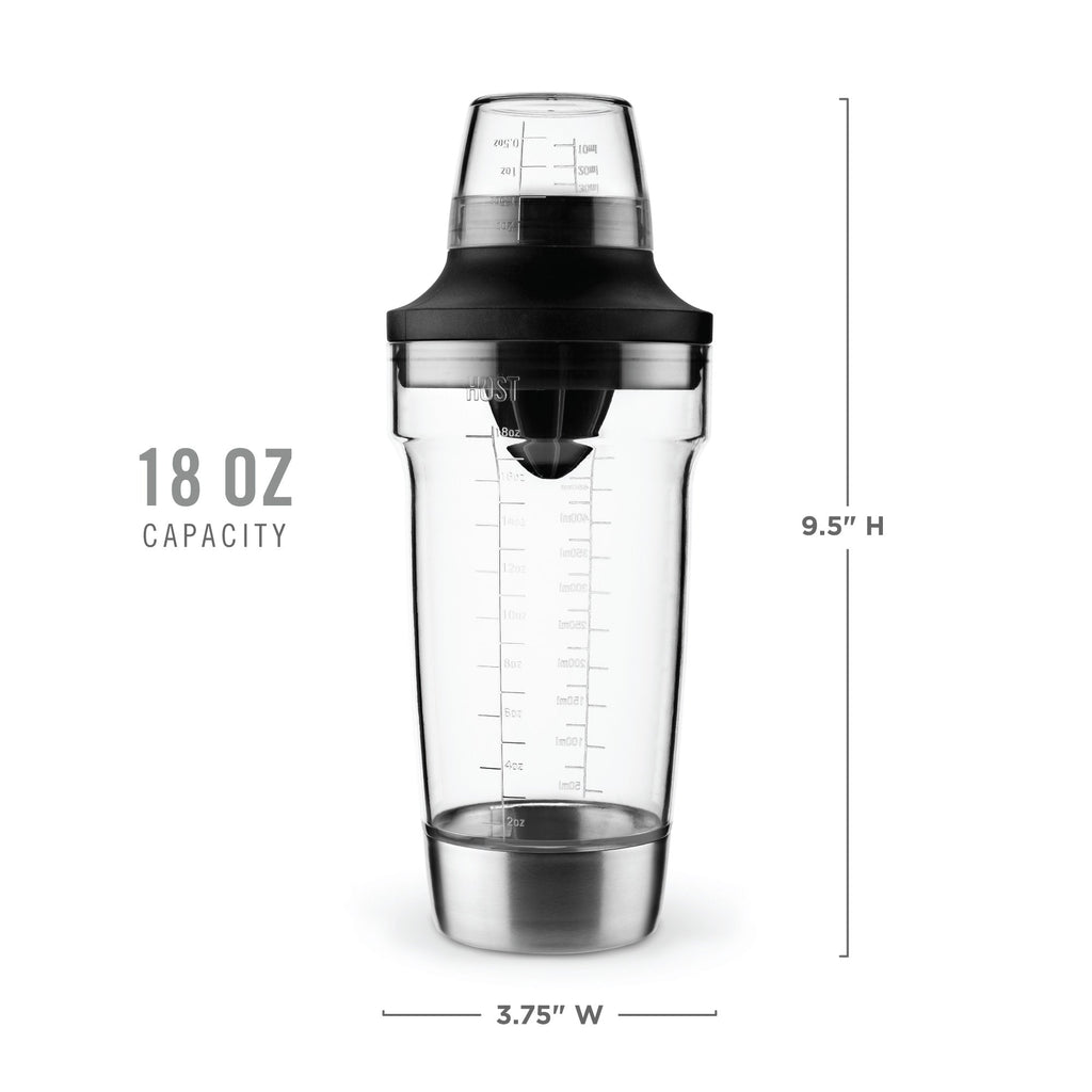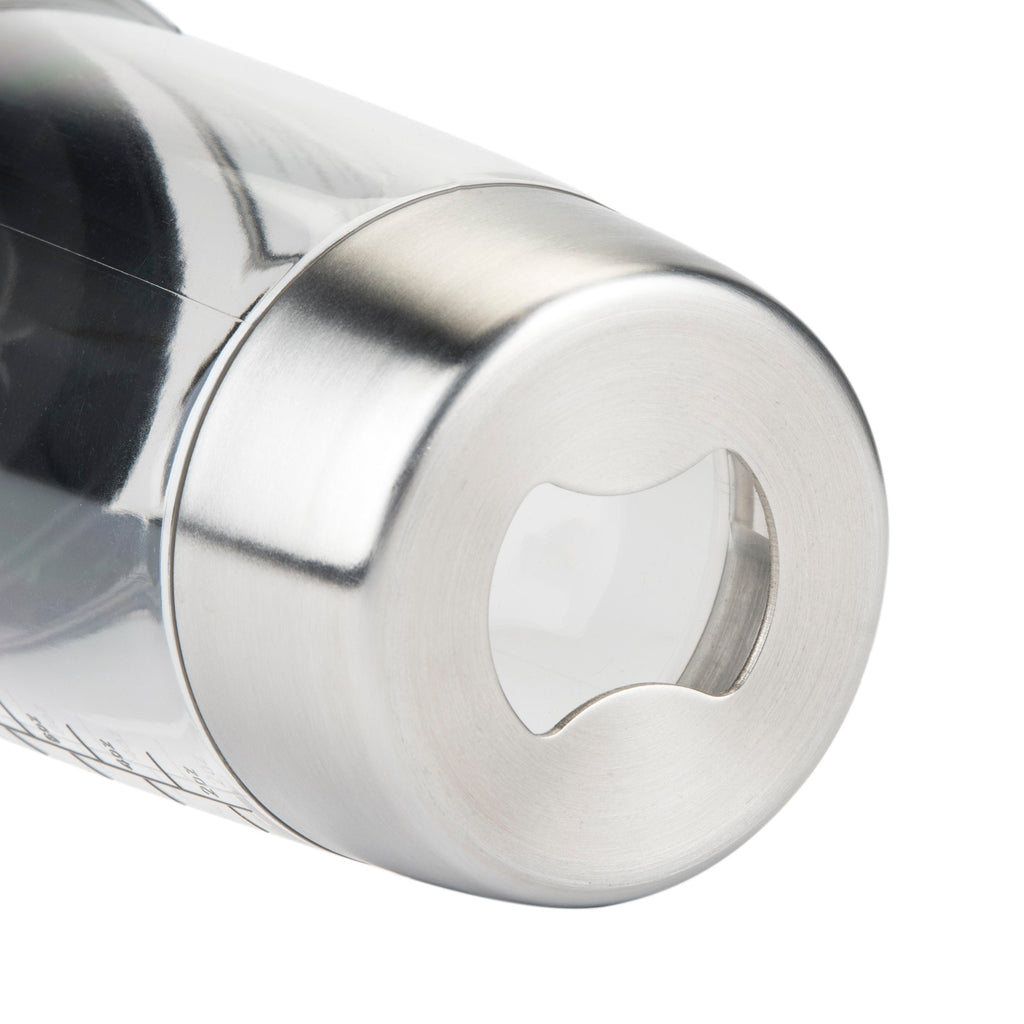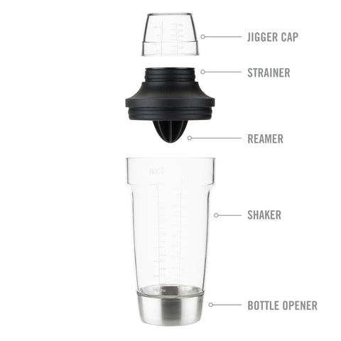 Shake things up with a cocktail crafting powerhouse. This Cocktail Shaker delivers form and function with a built-in juicer, strainer, jigger, and bottle opener in one stylish package.