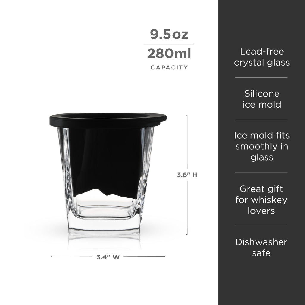 Take your whiskey on the rocks to new heights with this mountain ice cube mold set. Made from flexible silicone and designed to fit smoothly in the accompanying DOF glass, it creates an icy peak in the bottom of your tumbler.