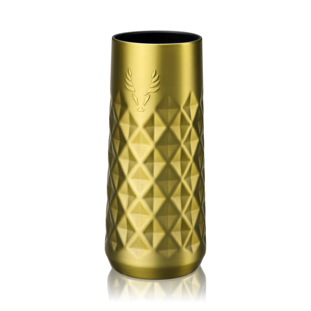This double-walled stainless steel Champagne Tumbler maintains your sparkling wine’s temperature without sacrificing your sipping experience. The TrueTaste ceramic coating inside protects your Champagne from developing a metallic aftertaste while sipping al fresco, while the thin rim and faceted design elevate this insulated drinkware.