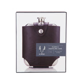 Flasks were made for voyagers. Snap your silver five-ounce vessel into a rich chocolate-brown carrying case and set off on the next adventure.
