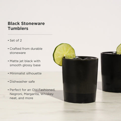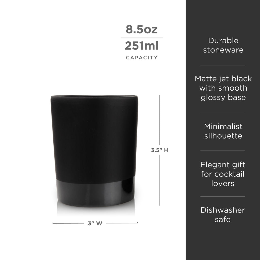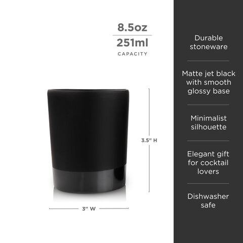 Impeccably smooth, incredibly sleek, and impossibly classy in black on black. Our jet black matte lowball tumbler is crafted from dishwasher-safe stoneware and ideal for anything from Scotch to sidecars.