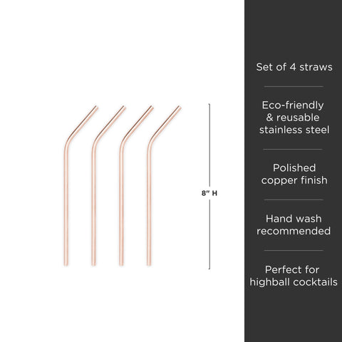 Skip the cherry and garnish your drink with a classic copper cocktail straw. Each one in this set of four arcs smoothly from any highball glass to your lips for the perfect sip.
