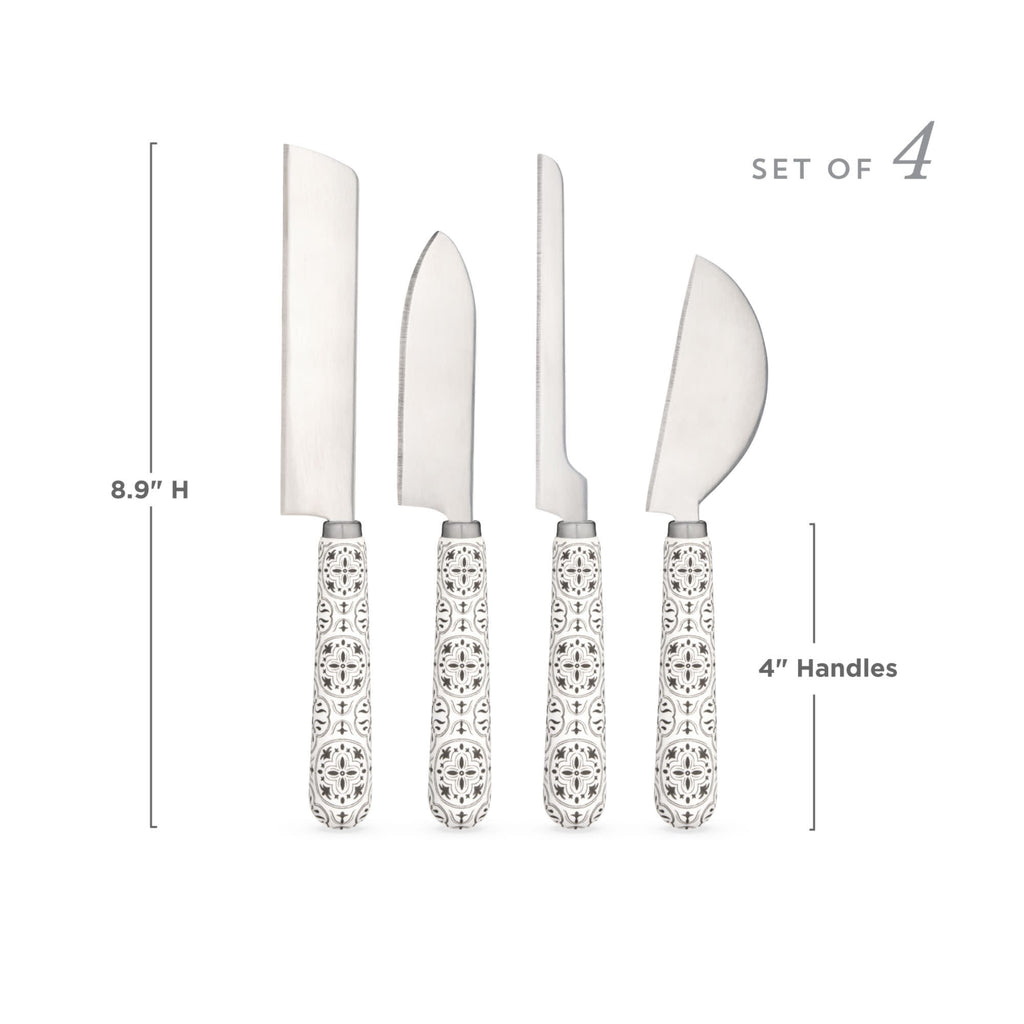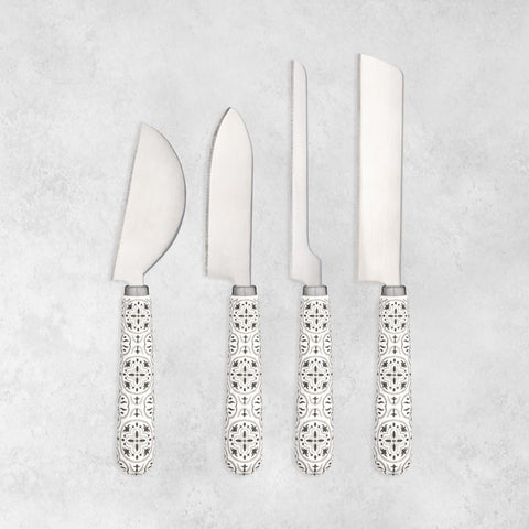 These ceramic tile patterned handles are satisfying to hold and use, while looking absolutely gorgeous on a cheese plate or cutting board. Guests can easily help themselves to their favorite cheeses with this elegant set of cheese knives.