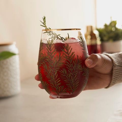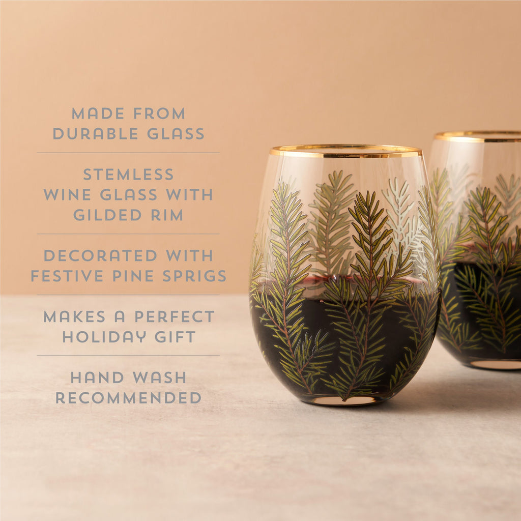 Bring the beautiful flora of winter to your table with this set of woodland wine glasses. Adorned with evergreen sprigs, these vessels are sure to make a statement all year round.